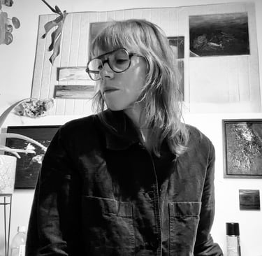 Informed by sustained studies of atmosphere and light, her paintings move beyond landscape toward emotional architecture. Minimal in form yet charged with pressure, the work holds stillness and fracture in the same frame.